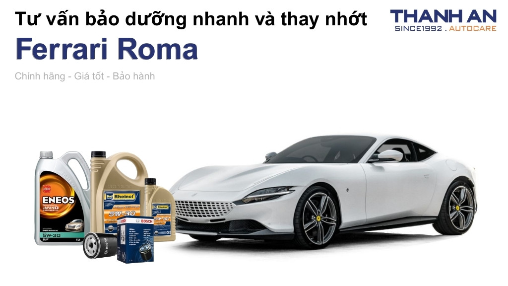 - Xe Ferrari Roma thay nhớt hãng hay nhớt ngoài tốt hơn? Tại hãng và Thanh An Autocare đều sử dụng nhớt chính hãng chất lượng cao. Tuy nhiên, khi thay nhớt tại Thanh An Autocare sẽ giúp bạn tối ưu chi phí hơn đáng kể nhưng vẫn đảm bảo quy trình kỹ thuật chuyên nghiệp chuẩn siêu xe.