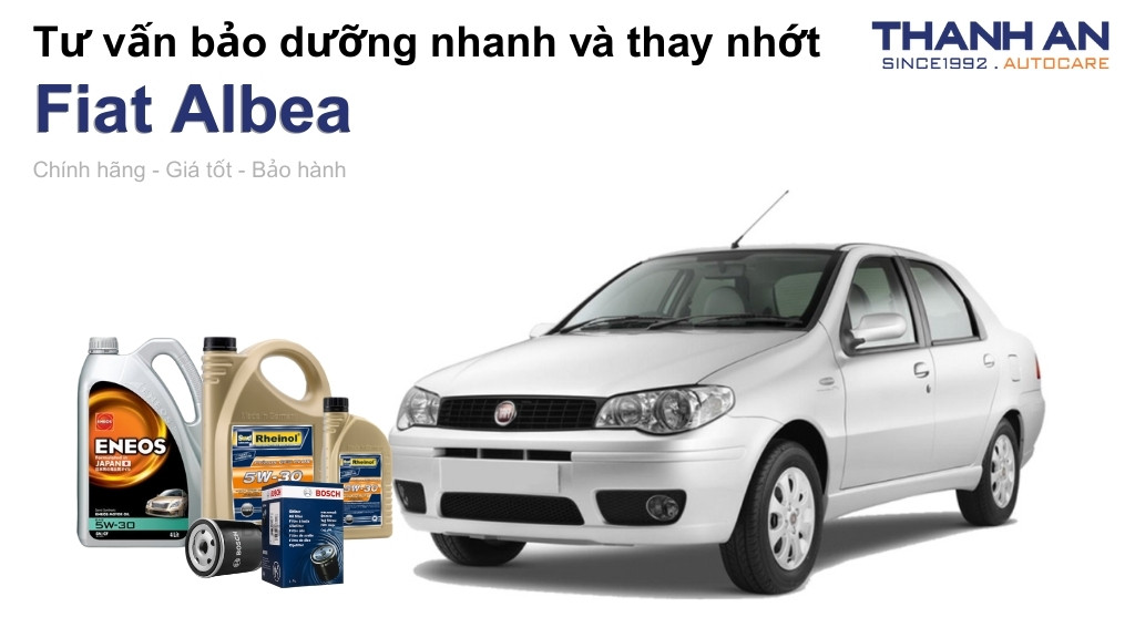 - Xe Fiat Albea thay nhớt hãng hay nhớt ngoài tốt hơn? Tại hãng và tại Thanh An Autocare đều là nhớt chính hãng nhưng khi thay nhớt cho xe Fiat Albea tại Thanh An Autocare sẽ tiết kiệm chi phí hơn so với hãng nhưng vẫn đảm bảo quy trình thay nhớt chuyên nghiệp.