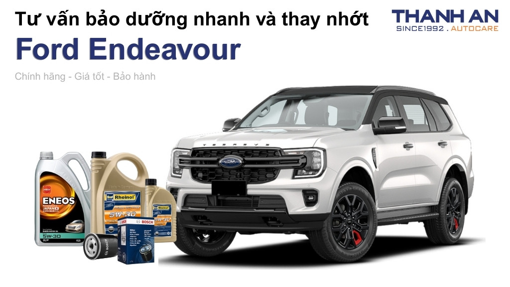 Ford Endeavour là mẫu SUV 7 chỗ sở hữu khả năng vận hành mạnh mẽ, chinh phục mọi địa hình khó khăn nhờ khối động cơ Duratorq hoặc EcoBlue bền bỉ. Để duy trì sức mạnh và độ bền cho "chiến mã" này, chủ xe cần thực hiện bảo dưỡng định kỳ ngay khi xe báo hiệu đến hạn thay dầu. Hãy cùng Thanh An Autocare tìm hiểu giải pháp thay nhớt xe Ford Endeavour chuẩn kỹ thuật giúp động cơ vận hành tối ưu nhất.