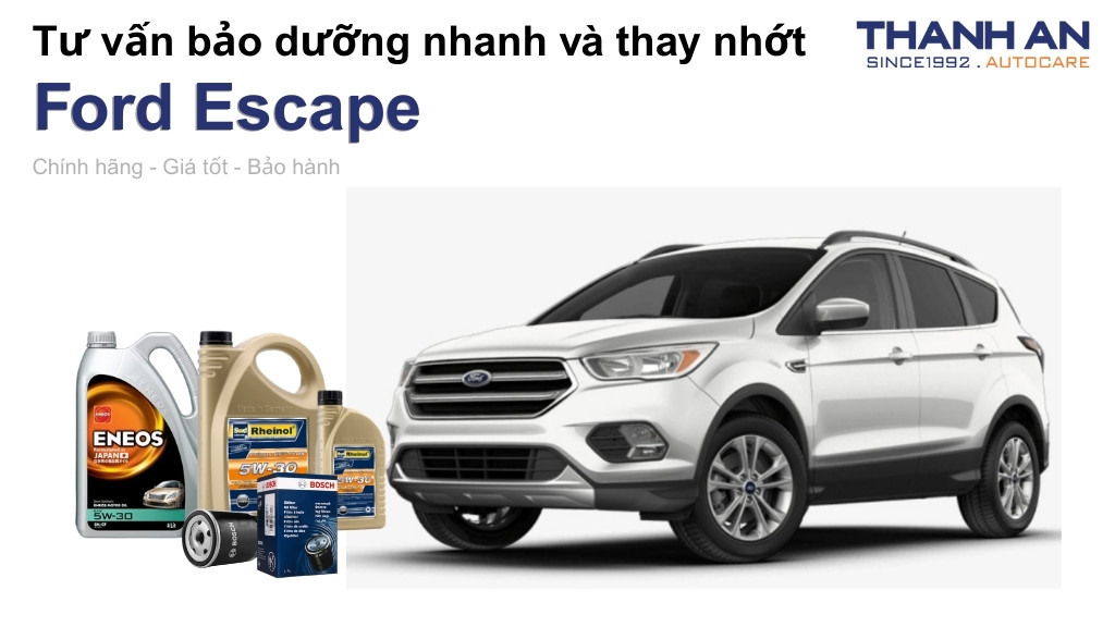 - Xe Ford Escape thay nhớt hãng hay nhớt ngoài tốt hơn? Tại hãng và tại Thanh An Autocare đều cung cấp nhớt chính hãng chất lượng cao. Tuy nhiên, khi thay nhớt cho xe Ford Escape tại Thanh An Autocare sẽ tiết kiệm chi phí hơn đáng kể so với hãng nhưng vẫn đảm bảo quy trình chuyên nghiệp.