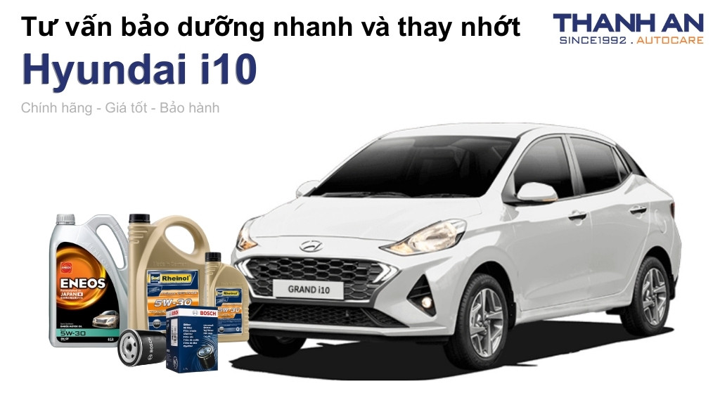 Hyundai Grand i10 là mẫu xe đô thị phổ biến nhờ khả năng vận hành linh hoạt nhưng động cơ nhỏ thường sinh nhiệt cao khi di chuyển liên tục. Chủ xe cần thực hiện thay dầu bôi trơn đúng định kỳ để bảo vệ các chi tiết máy và duy trì hiệu suất ổn định. Thanh An Autocare sẽ cung cấp giải pháp thay nhớt xe Hyundai i10 tối ưu giúp bạn an tâm trên mọi hành trình.
