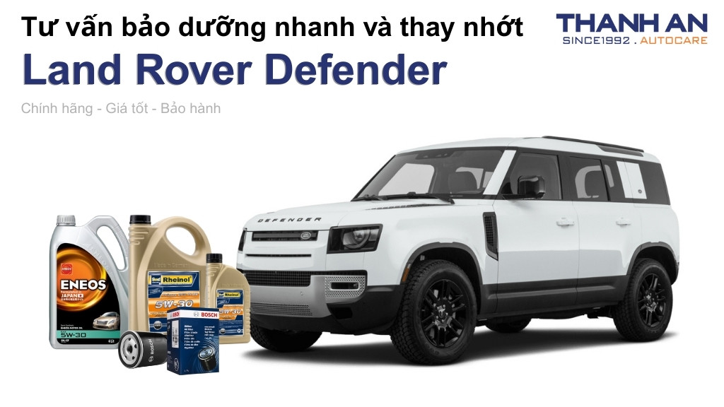 Khách hàng ở xa cũng có thể dễ dàng đặt mua combo nhớt và lọc chính hãng thông qua dịch vụ giao hàng toàn quốc của chúng tôi. Thanh An Autocare luôn sẵn sàng hỗ trợ tư vấn kỹ thuật trực tuyến để đảm bảo bạn chăm sóc chiếc Defender của mình đúng cách nhất.