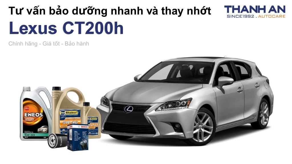 - Xe Lexus CT200h thay nhớt hãng hay nhớt ngoài tốt hơn? Thay nhớt cho Lexus CT200h tại Thanh An Autocare giúp bạn tiết kiệm chi phí đáng kể so với vào hãng nhưng vẫn đảm bảo dùng nhớt Rheinol/ENEOS chuẩn chính hãng và quy trình kỹ thuật nghiêm ngặt.