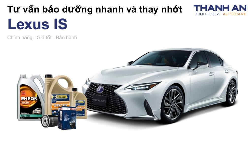 - Xe Lexus IS thay nhớt hãng hay nhớt ngoài tốt hơn? Hãng và gara uy tín đều tốt nếu dùng nhớt thật, nhưng khi thay nhớt cho xe Lexus IS tại Thanh An Autocare, bạn sẽ tiết kiệm chi phí đáng kể mà vẫn hưởng quy trình chuẩn chuyên nghiệp.