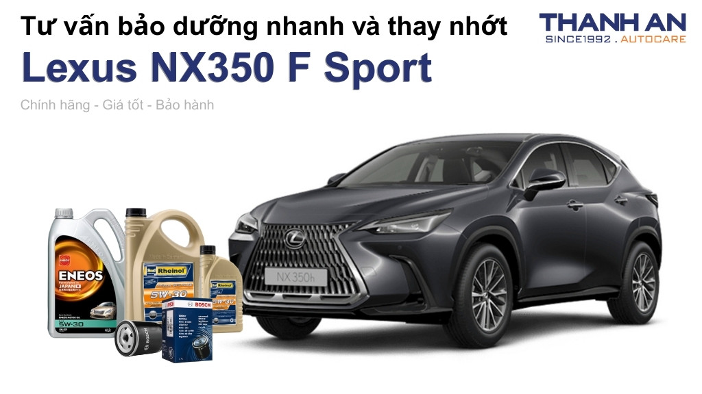 Lexus NX350 F Sport sở hữu khối động cơ Turbo mạnh mẽ, mang lại cảm giác lái phấn khích nhưng luôn đòi hỏi chế độ chăm sóc kỹ thuật khắt khe. Khi xe đã đến hạn bảo dưỡng, chủ xe thường ưu tiên tìm kiếm những giải pháp bôi trơn tối ưu để bảo vệ khối tài sản đắt giá này. Hãy cùng Thanh An Autocare tìm hiểu chi tiết quy trình thay nhớt xe Lexus NX350 F Sport giúp duy trì hiệu suất đỉnh cao và sự êm ái tuyệt đối.