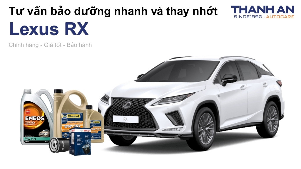 - Xe Lexus RX thay nhớt hãng hay nhớt ngoài tốt hơn? Tại Thanh An Autocare, chúng tôi sử dụng nhớt nhập khẩu cao cấp như Rheinol, Mobil 1, ENEOS tương đương tiêu chuẩn hãng. Điểm khác biệt lớn nhất là khi thay nhớt cho Lexus RX tại đây, bạn sẽ tiết kiệm chi phí đáng kể mà vẫn hưởng quy trình chuyên nghiệp.