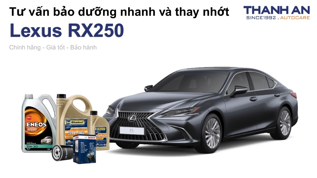 - Xe Lexus RX250 thay nhớt hãng hay nhớt ngoài tốt hơn? Thay nhớt tại hãng và Thanh An Autocare đều đảm bảo chất lượng nếu dùng hàng chính hãng. Tuy nhiên, khi thay nhớt cho xe Lexus RX250 tại Thanh An Autocare, bạn sẽ tiết kiệm chi phí đáng kể với quy trình chuẩn quốc tế.