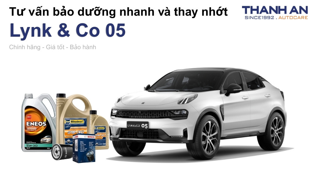 Lynk & Co 05 gây ấn tượng mạnh mẽ với thiết kế Coupe SUV thời thượng cùng khối động cơ 2.0L tăng áp mạnh mẽ. Để duy trì hiệu suất vận hành đỉnh cao này, chủ xe cần chú trọng đến quy trình bảo dưỡng định kỳ và đúng kỹ thuật. Thanh An Autocare sẽ cung cấp kiến thức chuyên sâu giúp bạn tìm kiếm thay nhớt cho xe ô tô sau khi xe ô tô đã đến hạn cần thay nhớt và chọn được sản phẩm tối ưu nhất cho xế cưng.