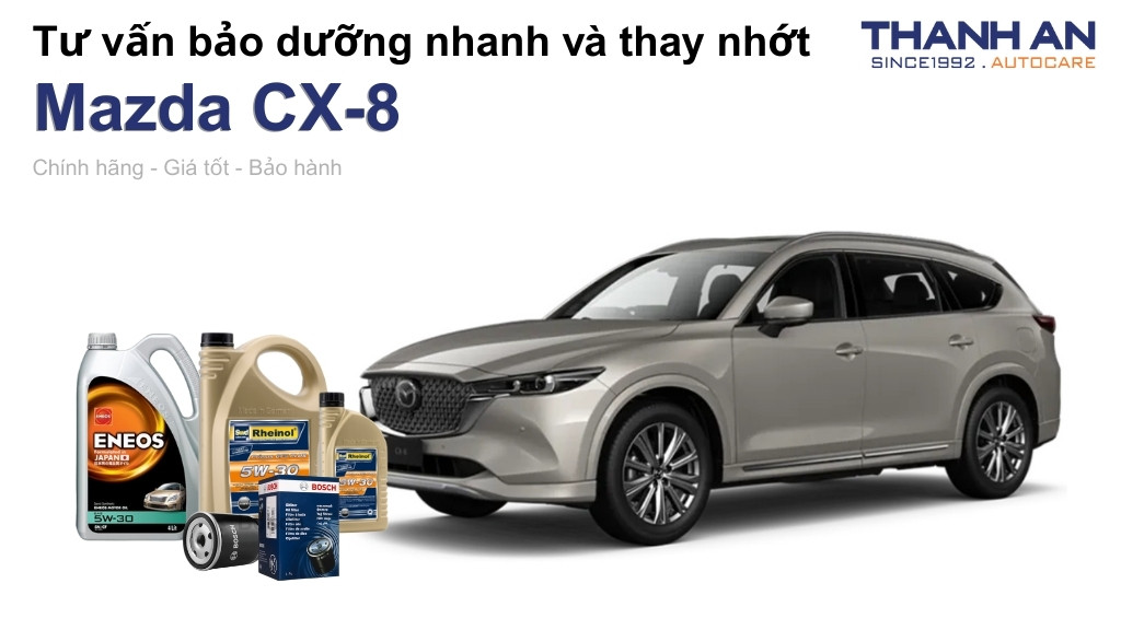 - Xe Mazda CX-8 thay nhớt hãng hay nhớt ngoài tốt hơn? Cả hai đều tốt nếu dùng hàng chính hãng, tuy nhiên thay nhớt xe Mazda CX-8 tại Thanh An Autocare giúp bạn tiết kiệm chi phí đáng kể so với hãng mà vẫn đảm bảo quy trình chuẩn chuyên nghiệp.