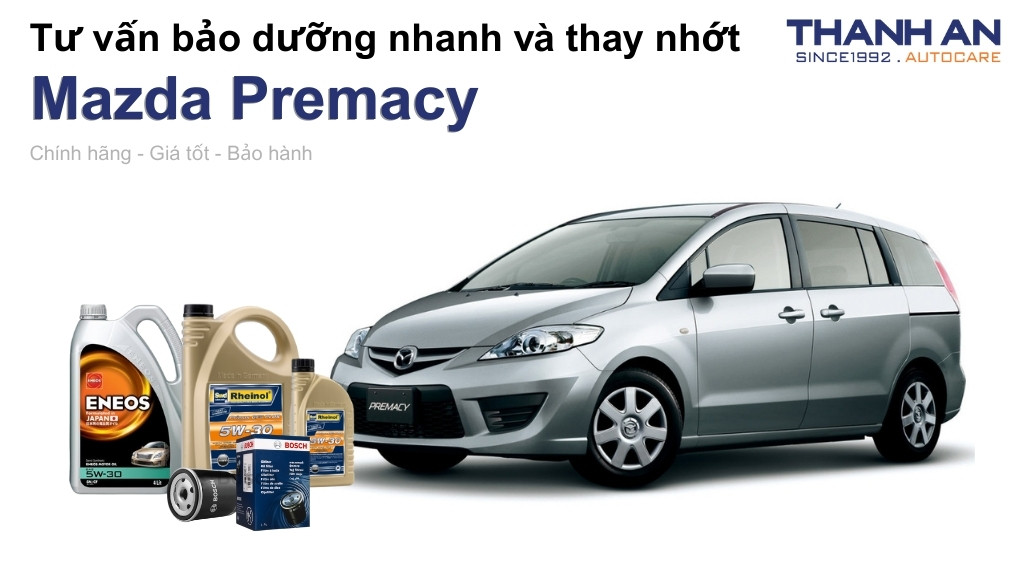 Dòng xe Mazda Premacy thường có tuổi đời sử dụng khá lâu, do đó các chi tiết máy cần lớp màng dầu bảo vệ dày dặn hơn để làm kín khe hở. Thanh An Autocare luôn ưu tiên tư vấn khách hàng sử dụng các thương hiệu danh tiếng như Rheinol và ENEOS. Hai dòng sản phẩm này chứa phụ gia đặc biệt giúp làm sạch muội than và giảm ma sát hiệu quả cho các động cơ đời cũ.