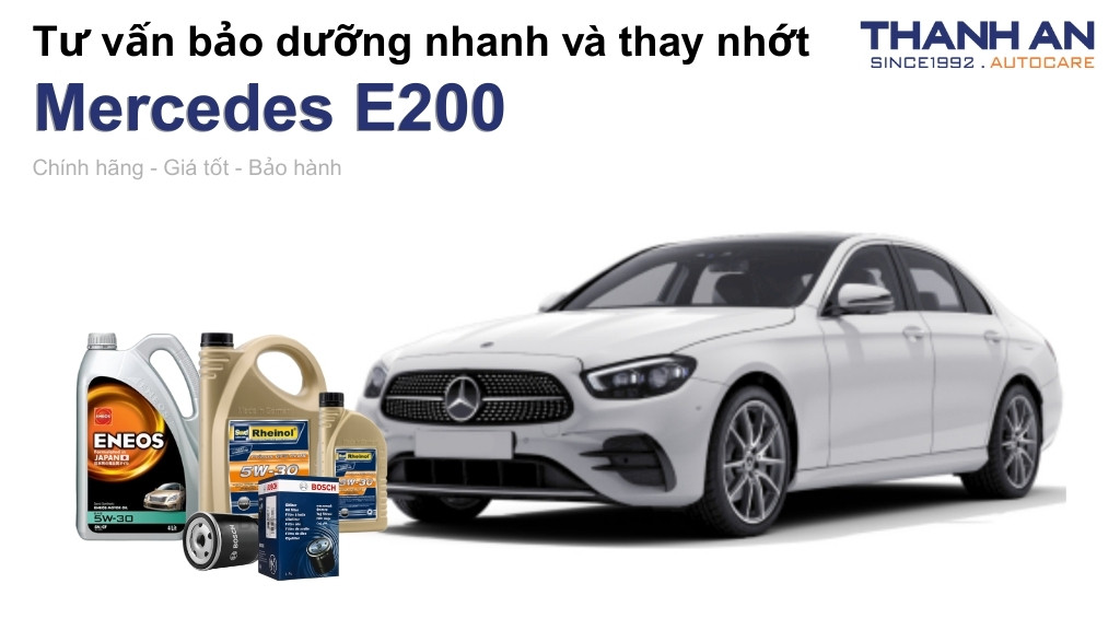 - Xe Mercedes E200 thay nhớt hãng hay nhớt ngoài tốt hơn? Tại Thanh An Autocare, chúng tôi sử dụng nhớt Rheinol nhập khẩu Đức tương đương hoặc cao cấp hơn nhớt hãng, nhưng chi phí tiết kiệm hơn 30-40%. Bạn hoàn toàn yên tâm về chất lượng và quy trình.
