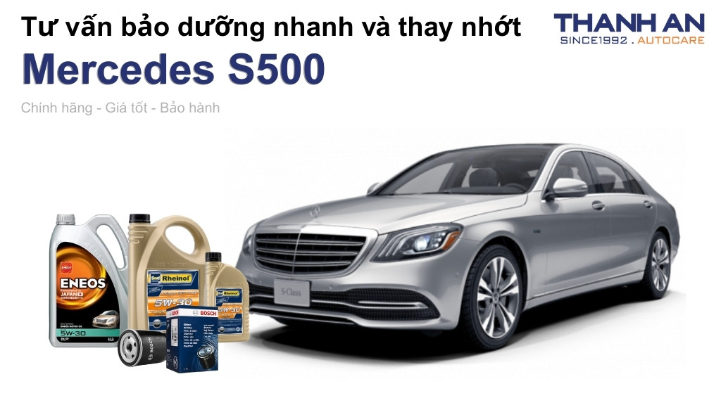 - Xe Mercedes S500 thay nhớt hãng hay nhớt ngoài tốt hơn? Hãng và Thanh An Autocare đều cung cấp nhớt đạt chuẩn MB-Approval. Tuy nhiên, khi thay nhớt cho xe Mercedes S500 tại Thanh An Autocare, bạn sẽ tiết kiệm đáng kể chi phí dịch vụ và thời gian chờ đợi mà vẫn đảm bảo quy trình chuẩn quốc tế.