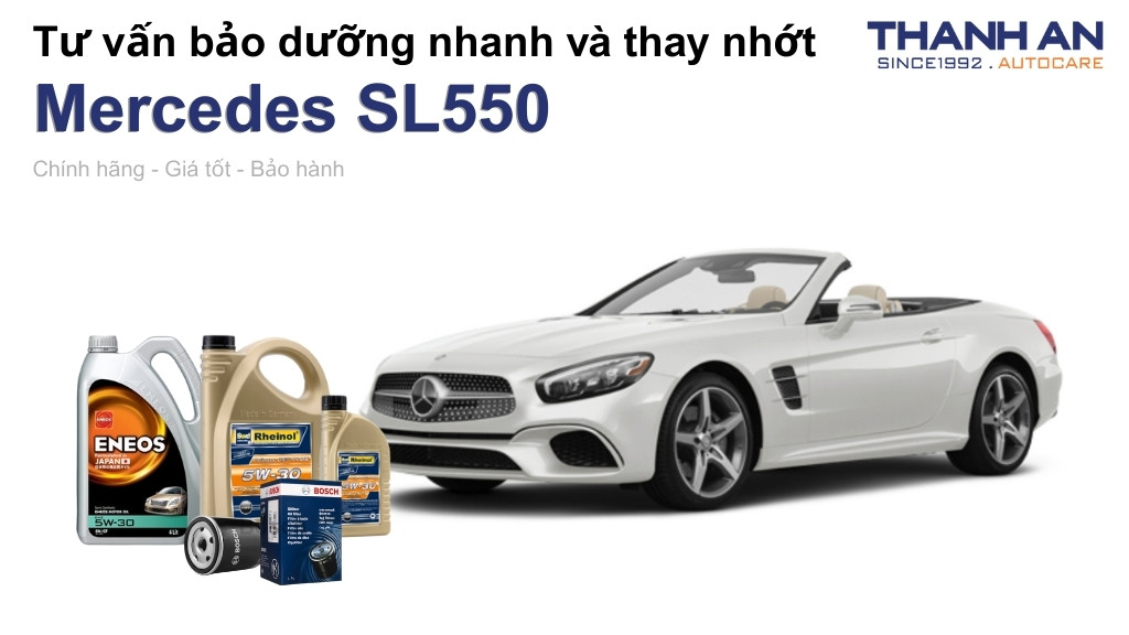 Động cơ hiệu suất cao của Mercedes SL550 đòi hỏi khắt khe về phẩm cấp dầu nhớt để đảm bảo khả năng tăng tốc và bảo vệ chi tiết máy. Thanh An Autocare khuyến nghị khách hàng ưu tiên sử dụng các dòng nhớt tổng hợp toàn phần từ hai thương hiệu danh tiếng là Rheinol (Đức) và ENEOS (Nhật Bản). Sản phẩm từ các hãng này đáp ứng tốt các tiêu chuẩn khắt khe của Châu Âu, giúp động cơ vận hành êm ái trong mọi điều kiện khắc nghiệt.