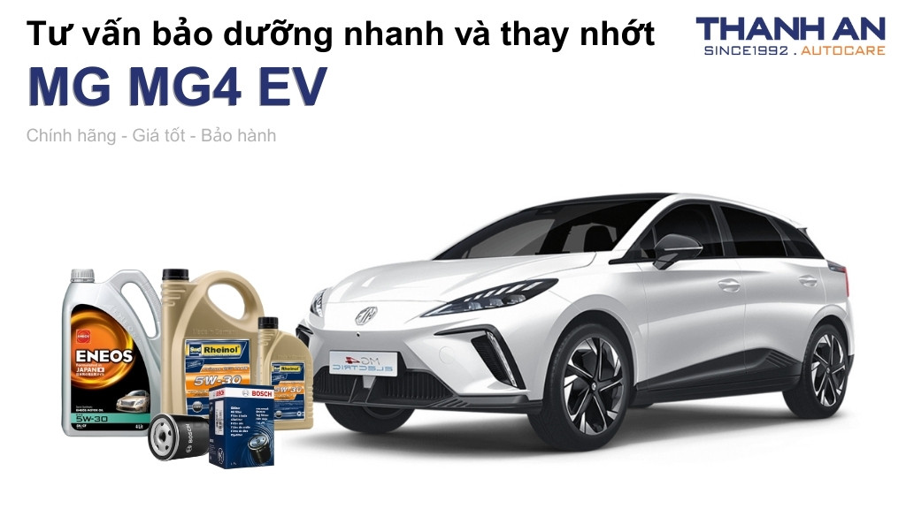 - Xe MG MG4 EV thay nhớt hãng hay nhớt ngoài tốt hơn? Hãng và Thanh An Autocare đều cung cấp các sản phẩm dầu nhớt đạt chuẩn kỹ thuật. Tuy nhiên, thay nhớt xe MG MG4 EV tại Thanh An Autocare giúp bạn tối ưu chi phí dịch vụ mà vẫn nhận được chất lượng chính hãng và sự chăm sóc kỹ lưỡng.