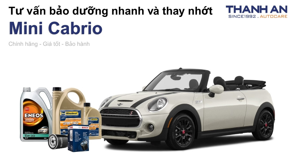- Xe Mini Cabrio thay nhớt hãng hay nhớt ngoài tốt hơn? Nhớt tại Thanh An Autocare đều là hàng chính hãng từ các thương hiệu lớn, đáp ứng tiêu chuẩn của Mini. Khi thay nhớt cho xe Mini Cabrio tại đây, bạn sẽ tiết kiệm chi phí đáng kể so với vào hãng mà vẫn nhận được chất lượng dịch vụ tương đương.
