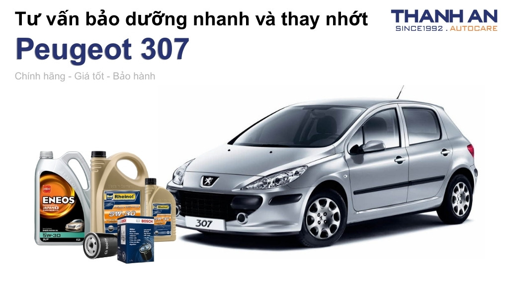 - Xe Peugeot 307 thay nhớt hãng hay nhớt ngoài tốt hơn? Thay tại hãng và tại Thanh An Autocare đều đảm bảo chất lượng nếu dùng nhớt chính hãng. Tuy nhiên, khi thay nhớt cho xe Peugeot 307 tại Thanh An Autocare, bạn sẽ tiết kiệm chi phí đáng kể mà vẫn được phục vụ theo quy trình chuyên nghiệp.