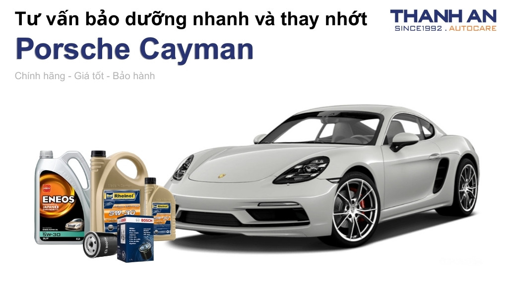 - Xe Porsche Cayman thay nhớt hãng hay nhớt ngoài tốt hơn? Tại hãng và tại Thanh An Autocare đều là nhớt chính hãng. Tuy nhiên, khi thay nhớt cho xe Porsche Cayman tại Thanh An Autocare sẽ tiết kiệm chi phí hơn so với hãng nhưng vẫn đảm bảo quy trình thay nhớt chuyên nghiệp.