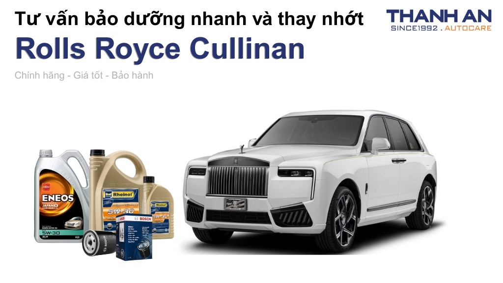 Rolls-Royce Cullinan được ví như viên kim cương đen quyền lực trong phân khúc SUV siêu sang toàn cầu. Khối động cơ V12 6.75L trứ danh cần được chăm sóc đặc biệt kỹ lưỡng khi đến hạn bảo dưỡng định kỳ. Hãy cùng Thanh An Autocare tìm hiểu chi tiết quy trình thay nhớt xe Rolls Royce Cullinan chuẩn hoàng gia để giữ gìn hiệu suất vận hành đỉnh cao.