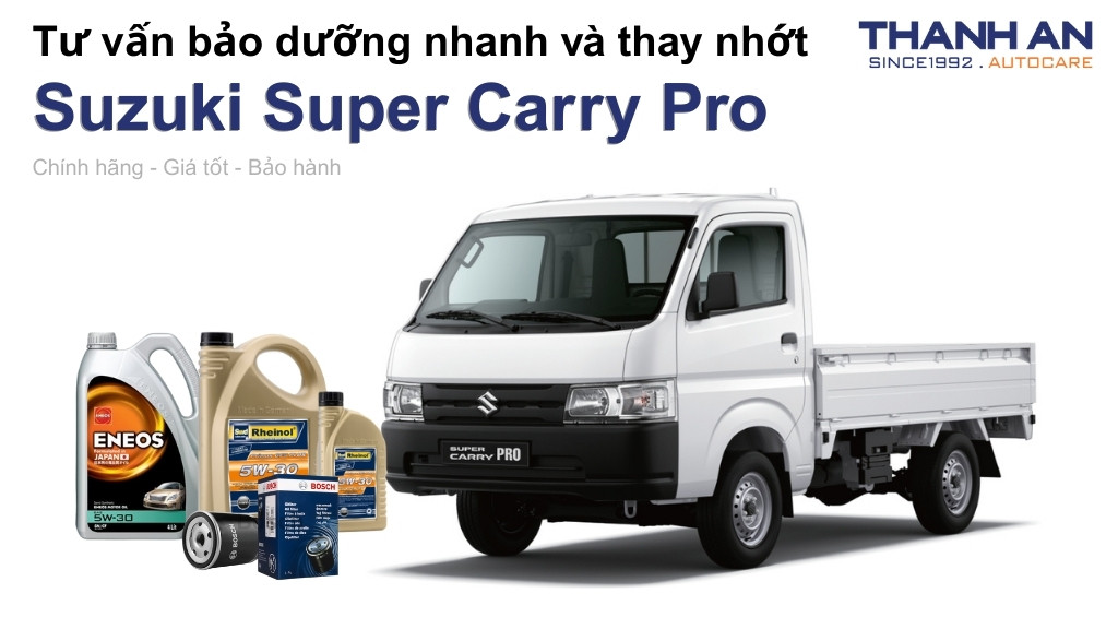 - Xe Suzuki Super Carry Pro thay nhớt hãng hay nhớt ngoài tốt hơn? Tại hãng và Thanh An Autocare đều cung cấp nhớt chính hãng chất lượng cao. Tuy nhiên, thay nhớt cho xe Suzuki Super Carry Pro tại Thanh An Autocare giúp bạn tối ưu chi phí bảo dưỡng đáng kể mà vẫn được phục vụ theo quy trình chuẩn chuyên nghiệp.
