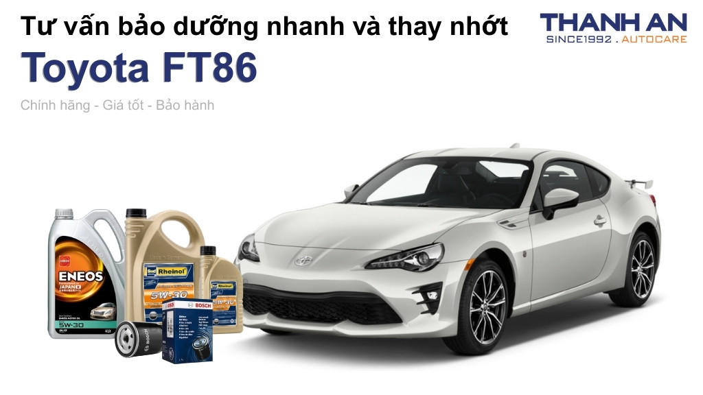 Bạn đang sở hữu chiếc xe thể thao Toyota FT86 với khối động cơ Boxer trứ danh và mong muốn xe luôn đạt hiệu suất đỉnh cao? Việc bảo dưỡng định kỳ bằng các sản phẩm dầu nhớt chất lượng là yếu tố tiên quyết để bảo vệ từng chi tiết máy trong điều kiện vận hành khắc nghiệt. Hãy cùng Thanh An Autocare tìm hiểu quy trình thay nhớt xe Toyota FT86 chuyên nghiệp giúp "chiến mã" của bạn luôn bền bỉ và mạnh mẽ.