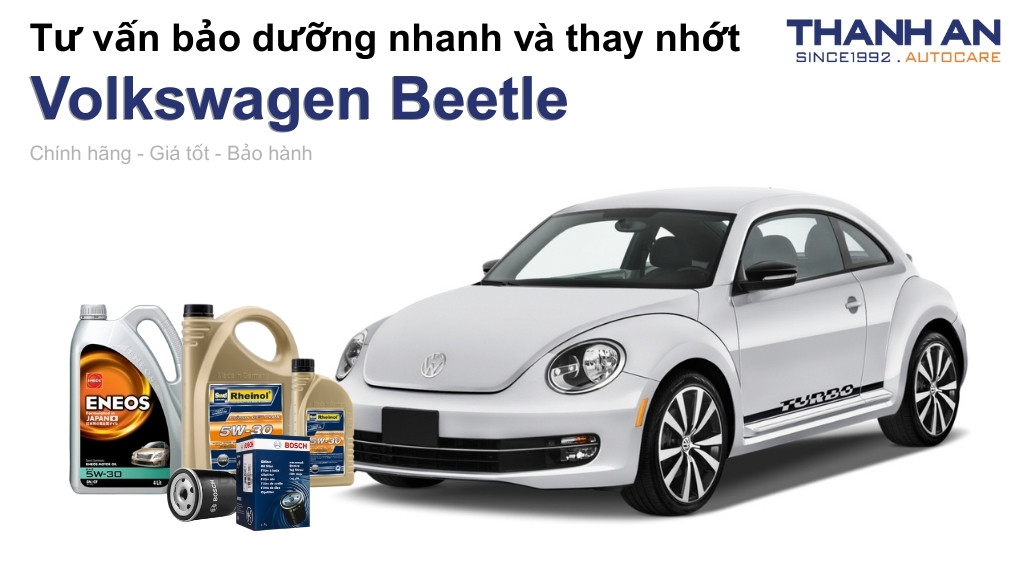 Volkswagen Beetle – mẫu xe "Con bọ" huyền thoại – luôn đòi hỏi sự chăm sóc kỹ lưỡng về hệ thống bôi trơn để duy trì khả năng vận hành linh hoạt và bền bỉ. Chủ xe cần thực hiện bảo dưỡng đúng hạn để bảo vệ khối động cơ tăng áp (Turbo) đặc trưng khỏi các hao mòn cơ học. Thanh An Autocare sẽ cung cấp kiến thức chuyên sâu về thay nhớt xe Volkswagen Beetle, giúp khách hàng chọn đúng sản phẩm tối ưu nhất.
