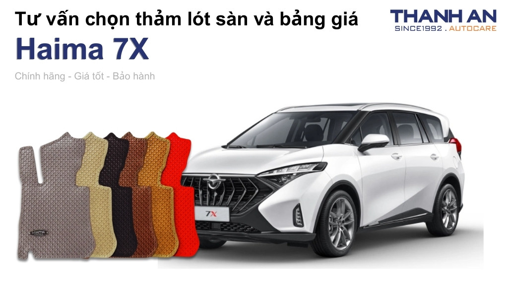 Bạn đang sở hữu chiếc MPV gia đình Haima 7X rộng rãi nhưng lại đau đầu vì bộ thảm nỉ nguyên bản bám bụi và rất khó vệ sinh? Thay mới thảm trải sàn là giải pháp cấp thiết giúp khoang xe luôn thơm tho, sạch sẽ và bảo vệ sàn xe khỏi các tác nhân gây hại. Hãy cùng Thanh An Autocare khám phá dòng thảm lót sàn xe Haima 7X chuyên dụng để nâng tầm đẳng cấp cho xế yêu của bạn ngay hôm nay.