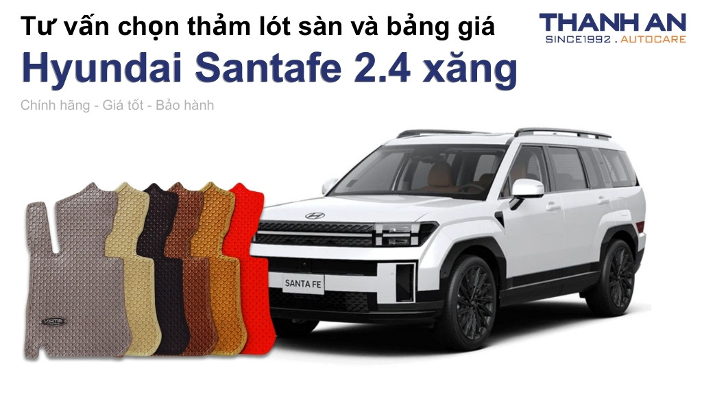 Bạn đang sở hữu chiếc SUV Hyundai Santafe 2.4 phiên bản máy xăng mạnh mẽ nhưng bộ thảm nỉ zin theo xe đã bắt đầu bám bẩn, ẩm mốc và gây mùi khó chịu? Việc thay thế một bộ thảm mới là giải pháp cấp thiết giúp bảo vệ sàn xe nguyên bản, đồng thời nâng cao tính thẩm mỹ cho không gian nội thất. Hãy cùng Thanh An Autocare khám phá những dòng thảm lót sàn xe Hyundai Santafe 2.4 xăng chất lượng nhất để có quyết định đầu tư xứng đáng.
