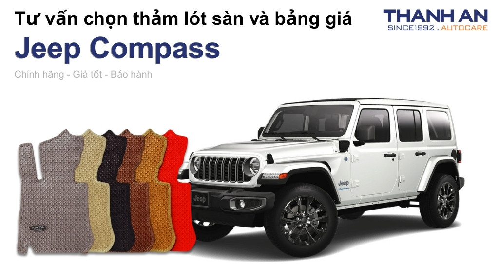 Bạn đang sở hữu chiếc Jeep Compass mạnh mẽ, cá tính nhưng lại đau đầu vì bộ thảm sàn cũ kỹ, bốc mùi ẩm mốc? Khoang nội thất xuống cấp không những làm giảm giá trị của xe mà còn ảnh hưởng trực tiếp đến trải nghiệm lái và sức khỏe của gia đình bạn. Hãy cùng Thanh An Autocare khám phá giải pháp nâng cấp thảm lót sàn ô tô cao cấp, giúp chiếc SUV của bạn luôn sạch sẽ, sang trọng và sẵn sàng cho mọi hành trình.
