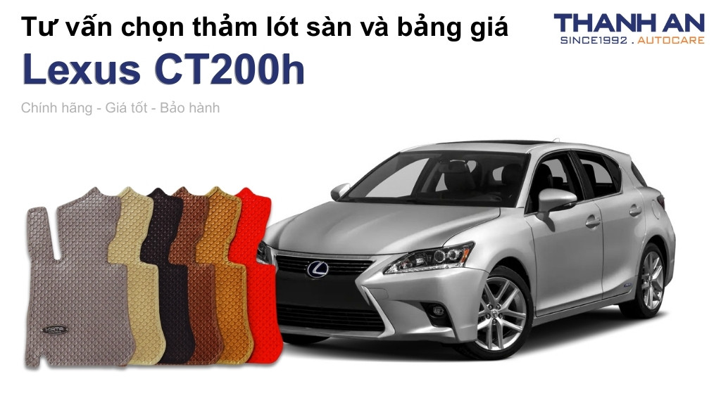 Bạn đang sở hữu chiếc hatchback hạng sang Lexus CT200h với khoang nội thất tinh tế, nhưng bộ thảm nỉ nguyên bản lại đang trở thành nơi tích tụ bụi bẩn và mùi hôi khó chịu? Để duy trì vẻ đẹp sang trọng và bảo vệ sàn xe khỏi tác động của thời tiết nóng ẩm, thay thế một bộ thảm lót sàn mới là giải pháp cấp thiết và hiệu quả nhất. Hãy cùng Thanh An Autocare khám phá dòng thảm lót sàn xe Lexus CT200h cao cấp, giúp nâng tầm trải nghiệm lái xe và bảo vệ sức khỏe gia đình bạn.