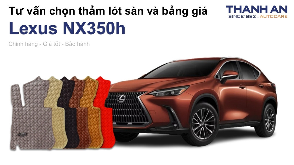 Bạn đang sở hữu tuyệt tác công nghệ Hybrid Lexus NX350h nhưng bộ thảm sàn cũ kỹ, xuống cấp đang làm giảm đi sự tinh tế của khoang nội thất? Thay mới thảm lót sàn là giải pháp cấp thiết giúp bảo vệ sàn xe khỏi bụi bẩn, ẩm mốc và hoàn thiện vẻ đẹp sang trọng cho xế hộp. Hãy cùng Thanh An Autocare khám phá dòng thảm lót sàn xe Lexus NX350h cao cấp để có sự đầu tư xứng tầm nhất.