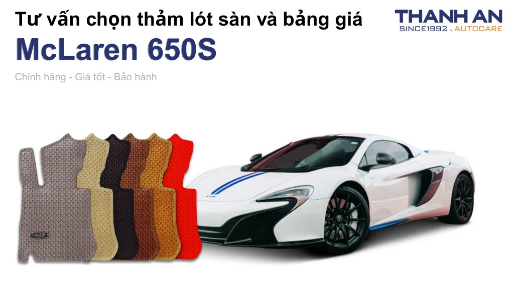 Quý khách hàng sở hữu McLaren 650S cần tư vấn về màu sắc thảm để phối với nội thất Alcantara hoặc da cao cấp, hãy liên hệ ngay Hotline 0906662441 hoặc kết nối qua Zalo OA của Thanh An Autocare để được hỗ trợ riêng.