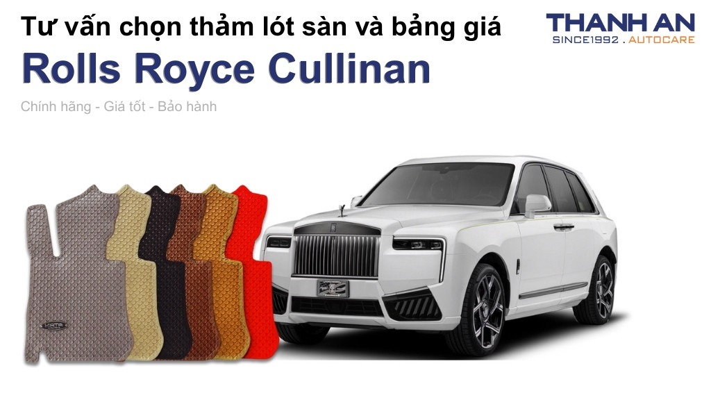 Rolls Royce Cullinan được mệnh danh là "viên kim cương" trong làng SUV siêu sang, nơi mỗi chi tiết nội thất đều là một tác phẩm nghệ thuật Bespoke hoàn hảo. Tuy nhiên, sau thời gian dài sử dụng, bộ thảm sàn nguyên bản có thể bị xuống cấp, ẩm mốc làm giảm đi giá trị thẩm mỹ và trải nghiệm hưởng thụ của chủ nhân. Thanh An Autocare xin giới thiệu giải pháp thay thế hoàn hảo với thảm lót sàn ô tô cao cấp, giúp gìn giữ vẻ đẹp sang trọng và bảo vệ sàn xe tối ưu.