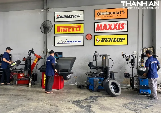 Khách hàng thay lốp xe ô tô tại cửa hàng của Thanh An Autocare quận 7