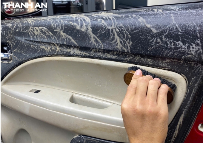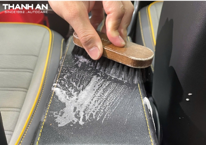 - Làm sạch sâu theo vật liệu ghế, tập trung các khu vực hay bẩn nặng: rãnh ghế, đường chỉ, hông ghế, lưng ghế.