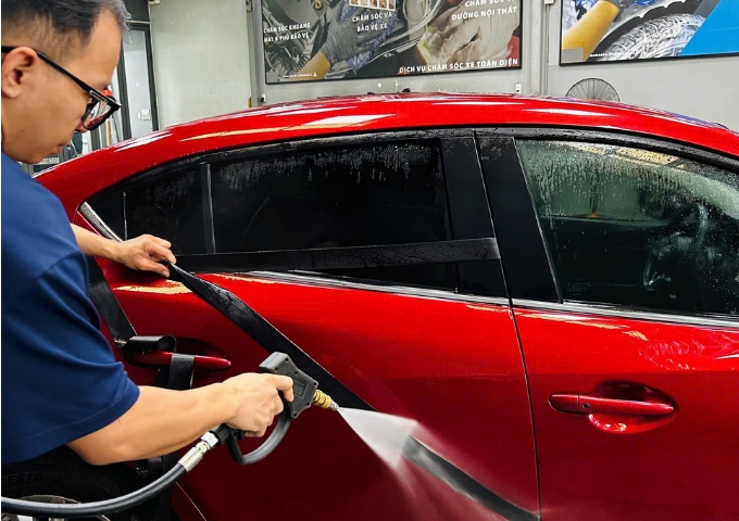 - Rửa sạch thân xe để loại bụi bẩn bám ngoài, giúp xe gọn gàng đồng bộ trước khi bước vào phần nội thất.